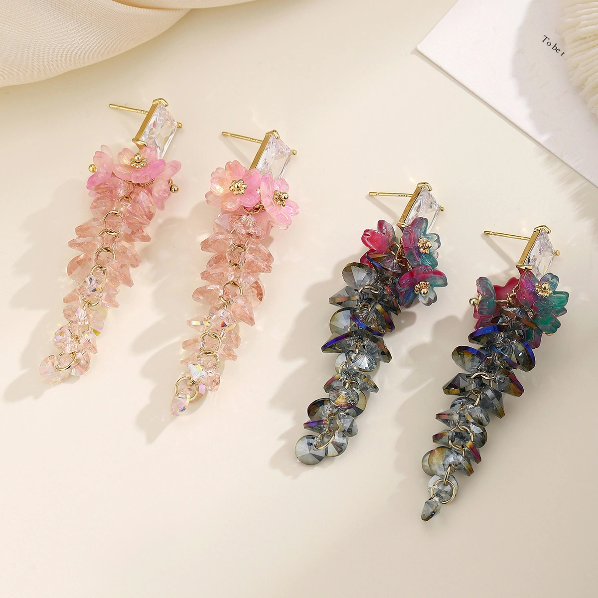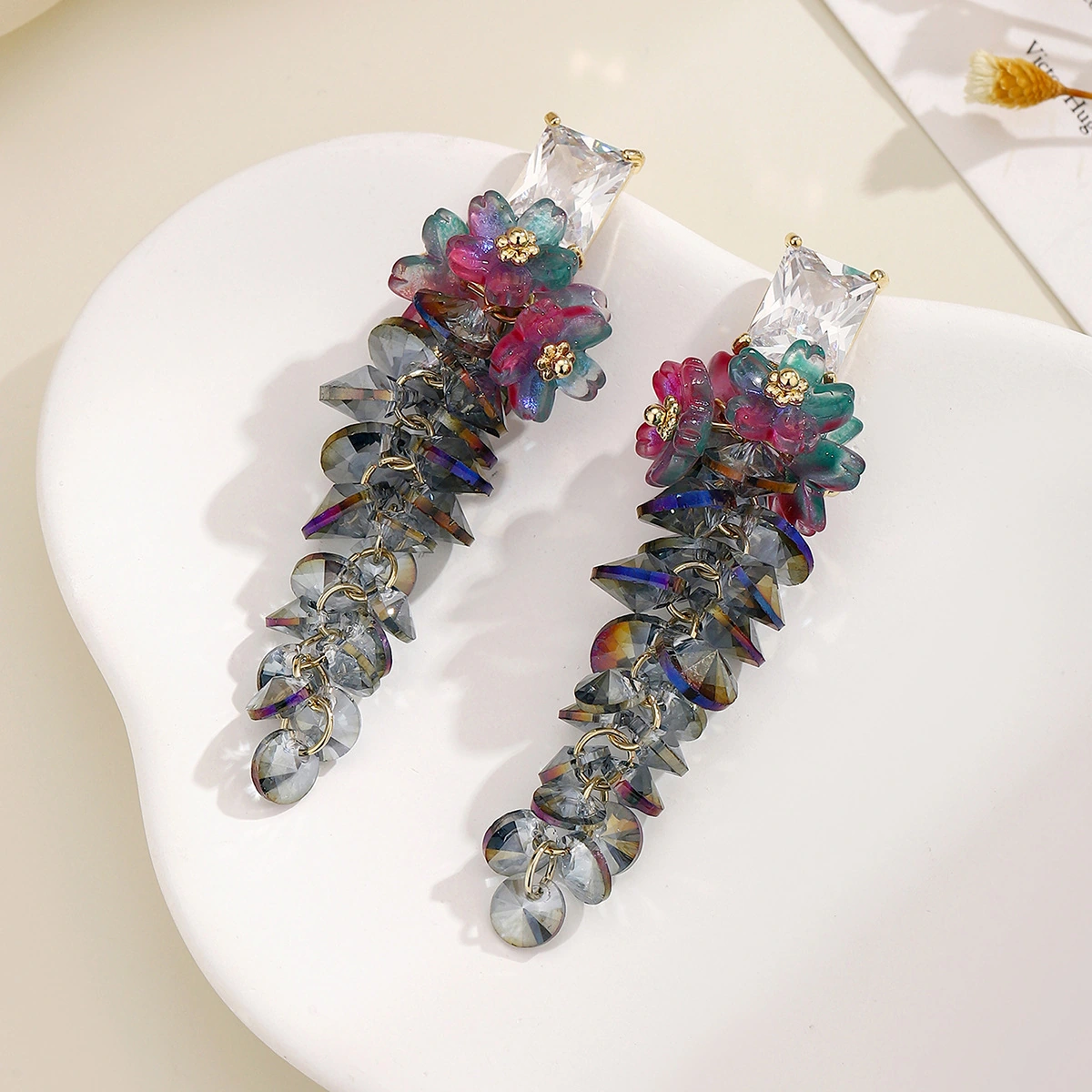 Crystal Wisteria Floral Earrings