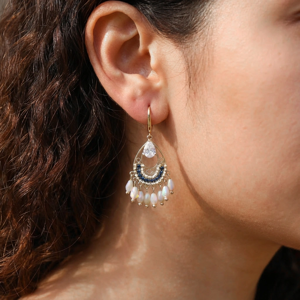 As each pair is meticulously handcrafted, please allow for slight variations in detail and stone placement. This attests to the unique, artisanal quality of your one-of-a-kind earrings.