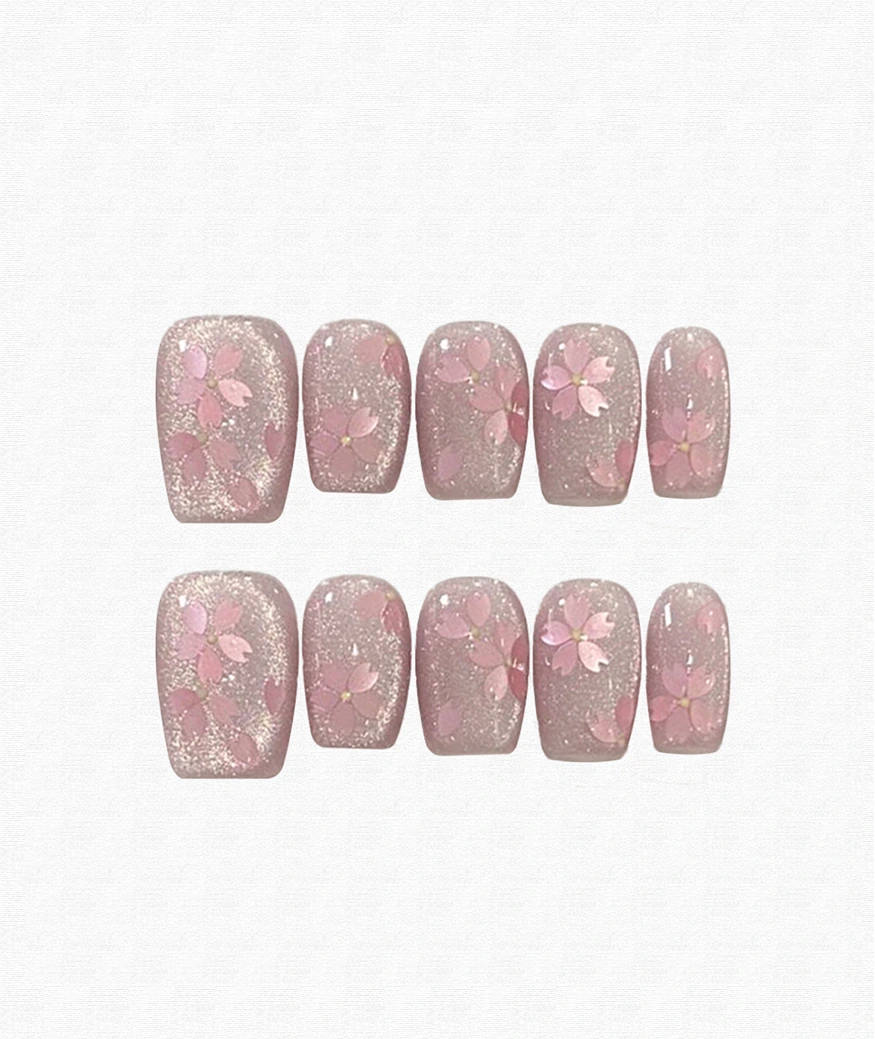Romantic Cherry Blossom Coffin Press On Nails